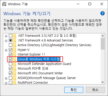 > Linux용 Windows 하위 시스템 사용