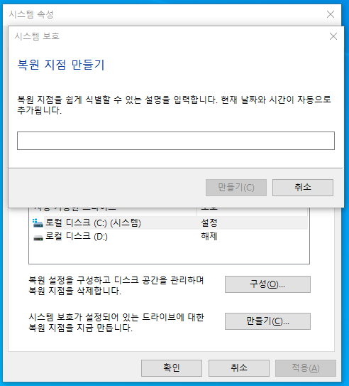 > 시스템 복원지점 만들기