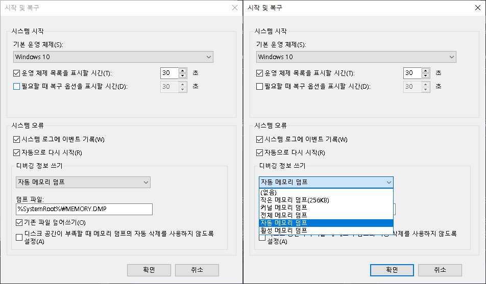 [크래시 덤프 생성 설정]
