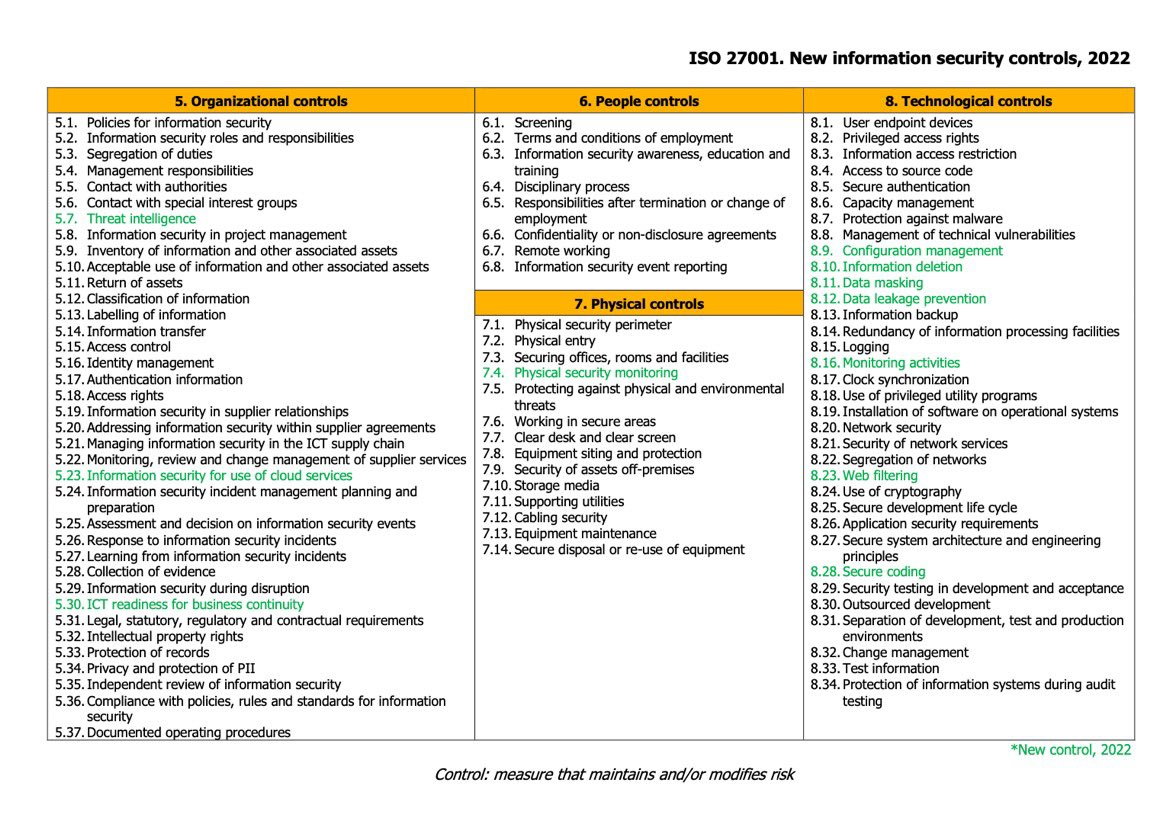 ISO 270001 Information Security Controls