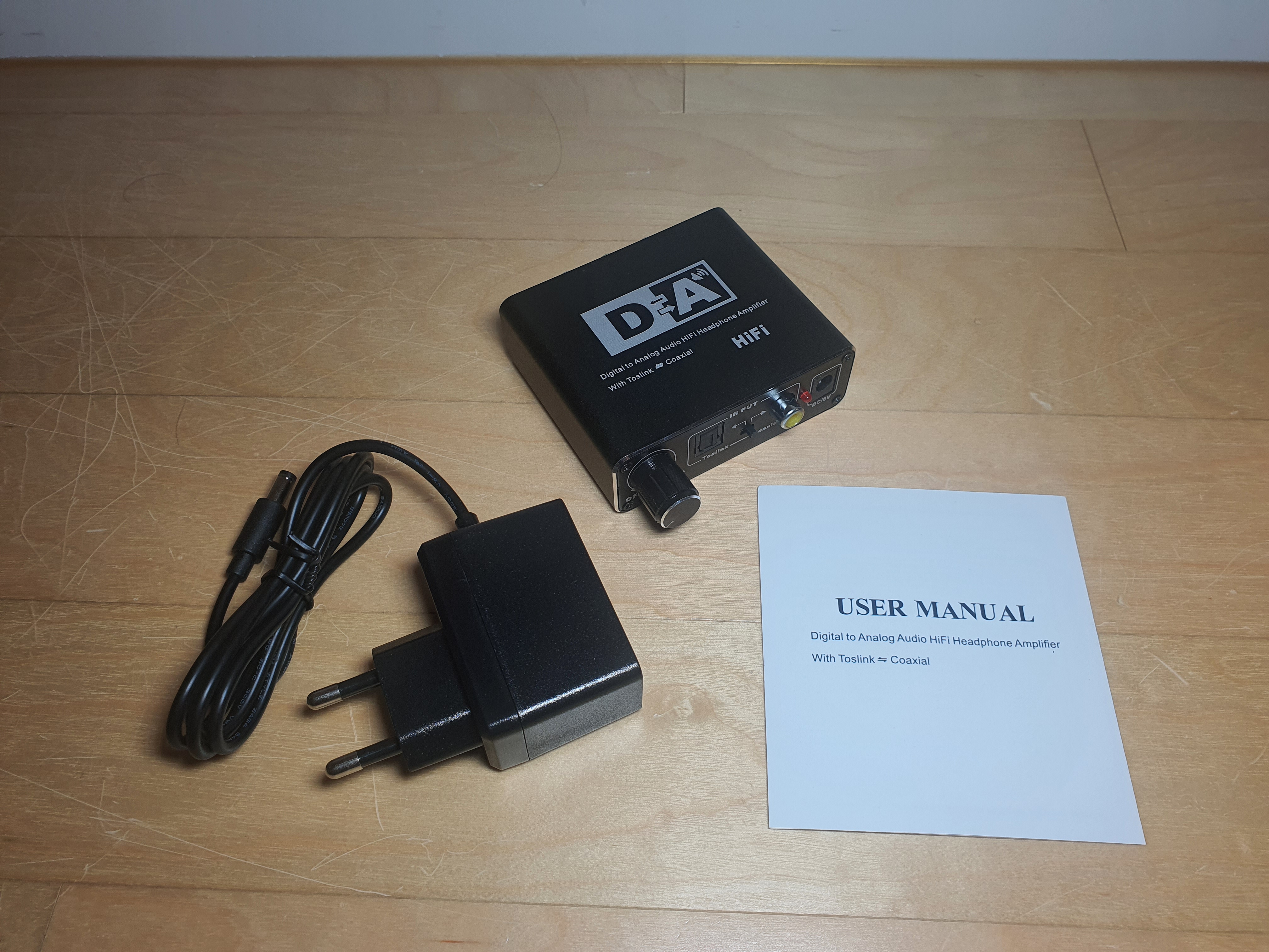 > 광(Optical, Toslink) 또는 동축(Coaxial) 디지털 오디오 신호를 RCA(좌/우), 3.5mm 스테레오(헤드폰) 아날로그 신호로 변환.