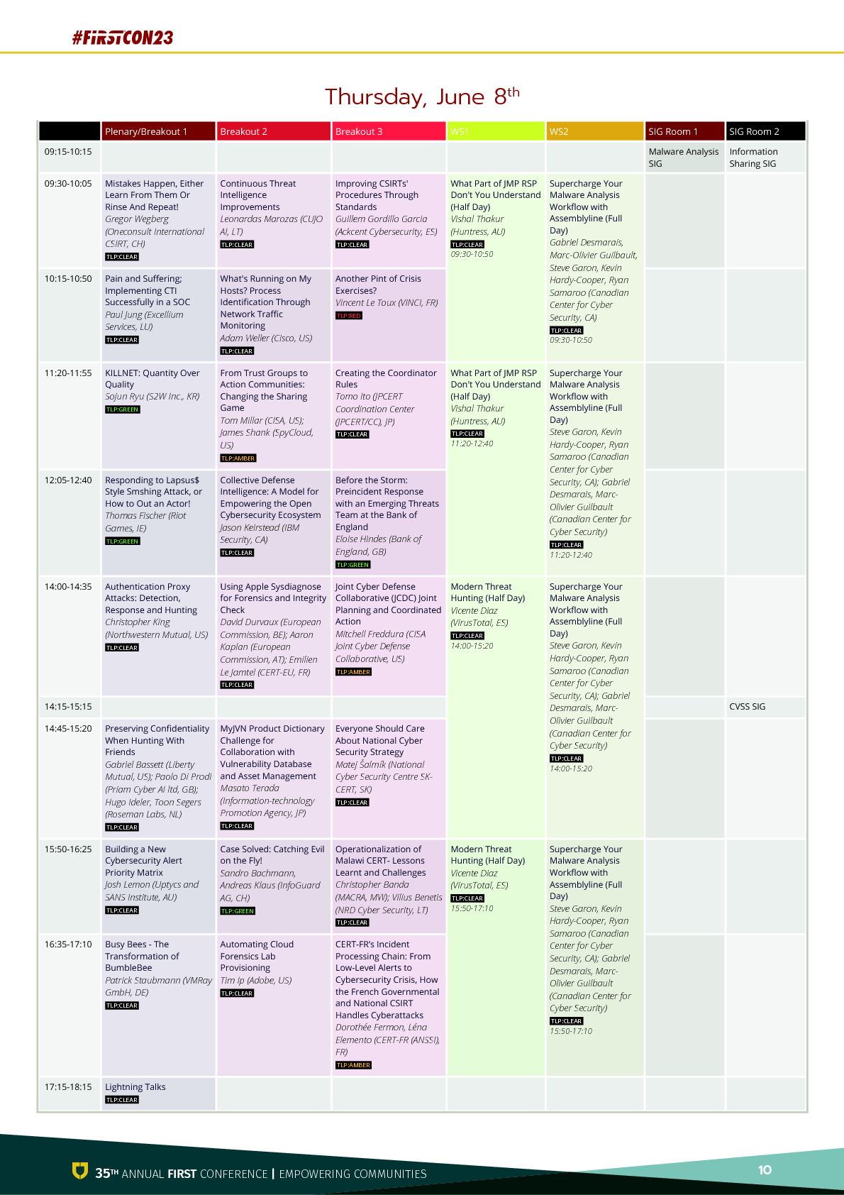 FIRST 커뮤니티의 황금 관문인 FIRST 연례 컨퍼런스에 오신 것을 환영하며, 그리고 내년에 일본 후쿠오카에서 열리는 제36회 FIRST 연례 컨퍼런스에서 다시 뵙기를 바랍니다.