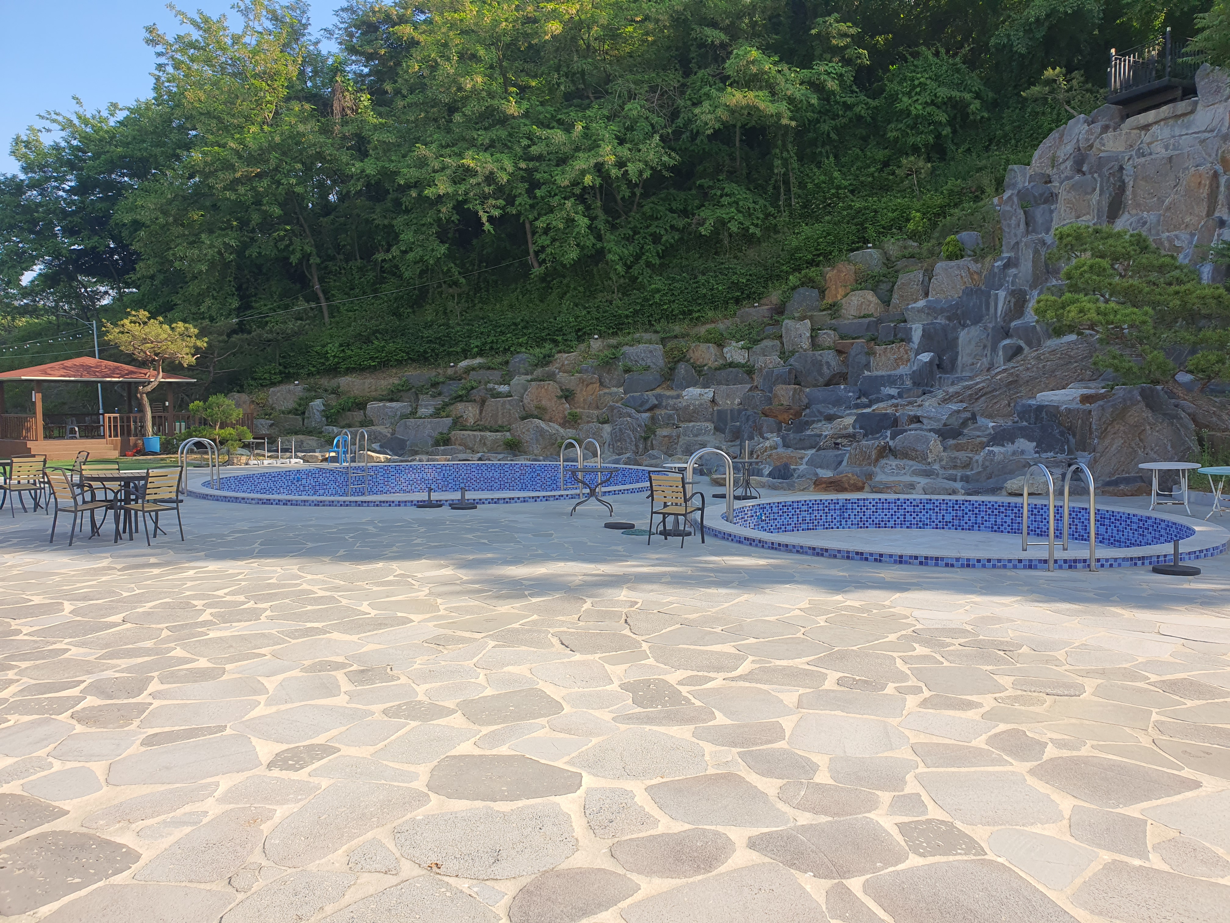 > 수영장은 2곳으로 나뉘며, 수심이 낮아 초등학생 이하 아이들에게 안전합니다.