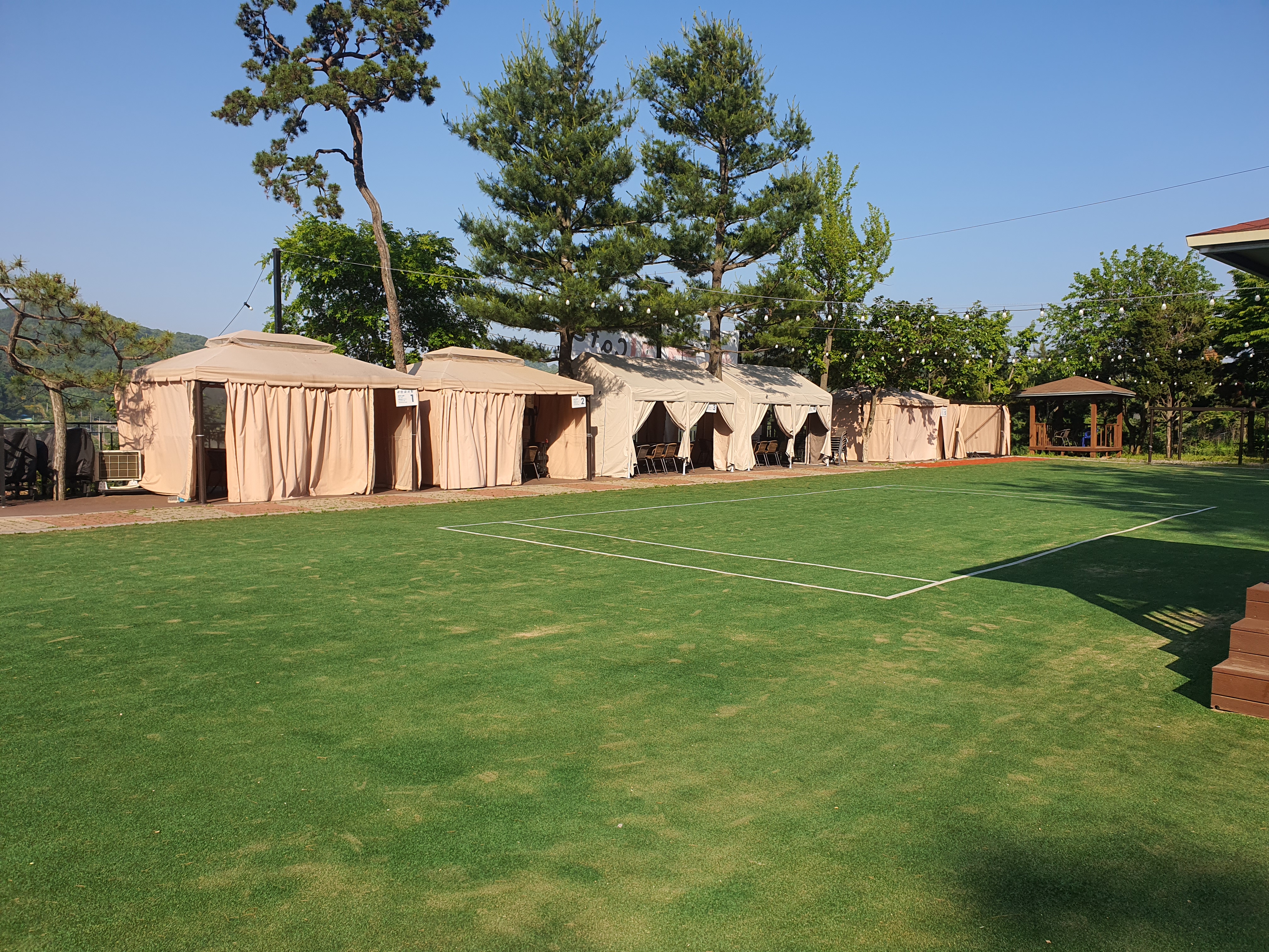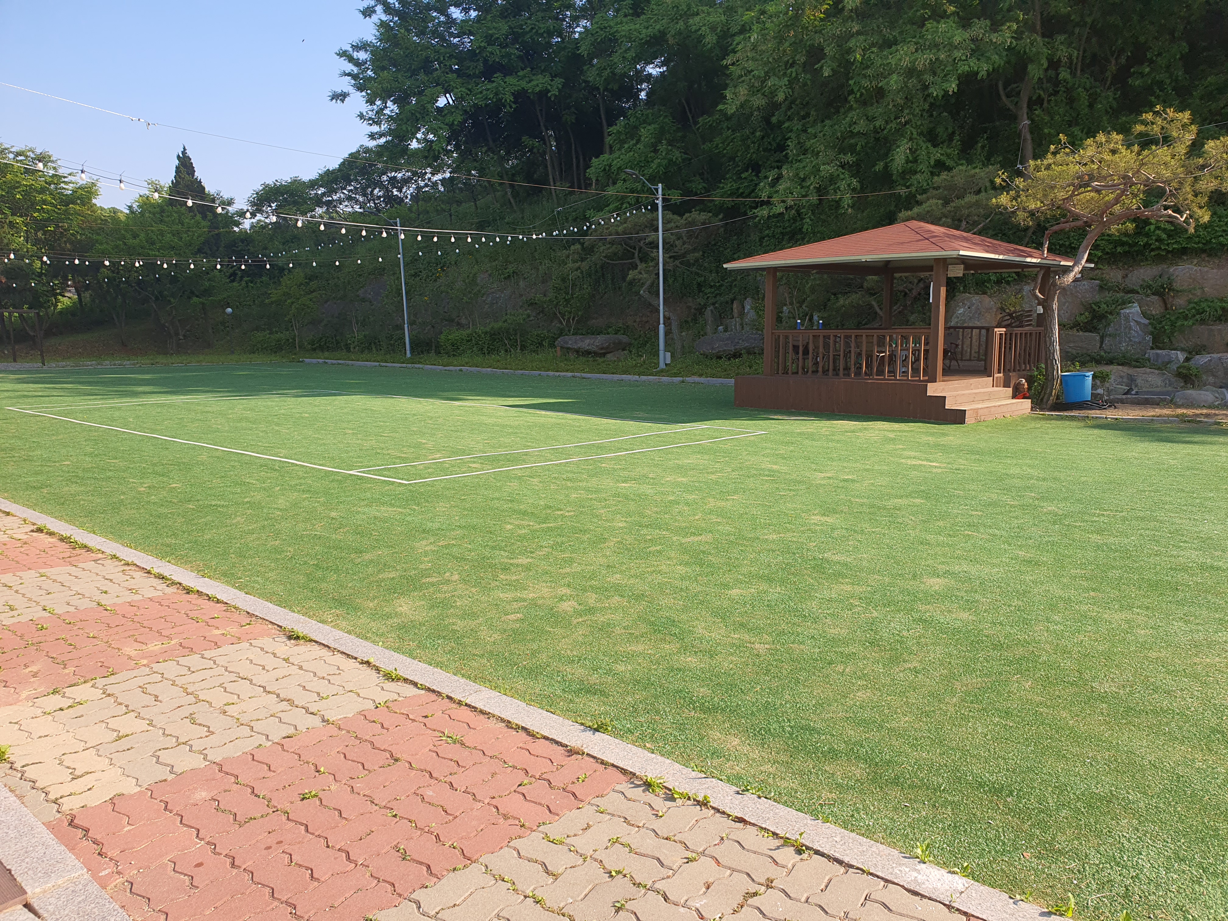 > 족구장, 인공잔디 마당 등 체육시설도 함께 운영되어 단체 모임, 가족 나들이에 적합합니다.