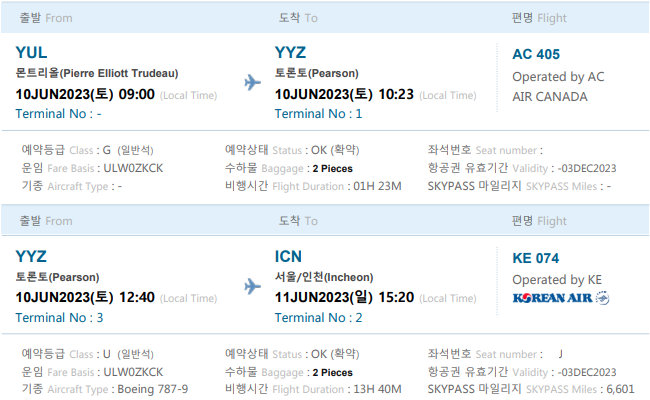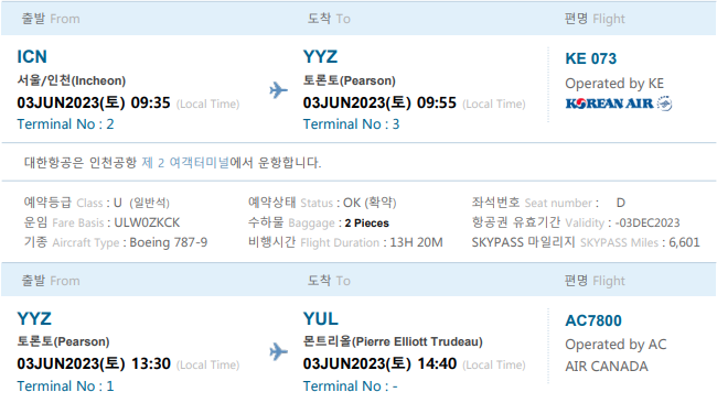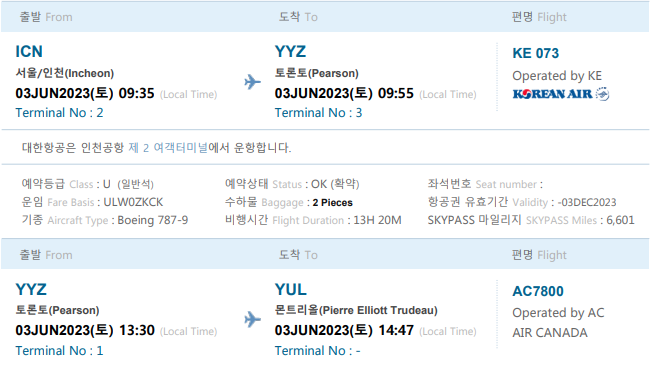 그래도 캐나다에서 환승하는 항공권까지 발권해줘서 좋았습니다.