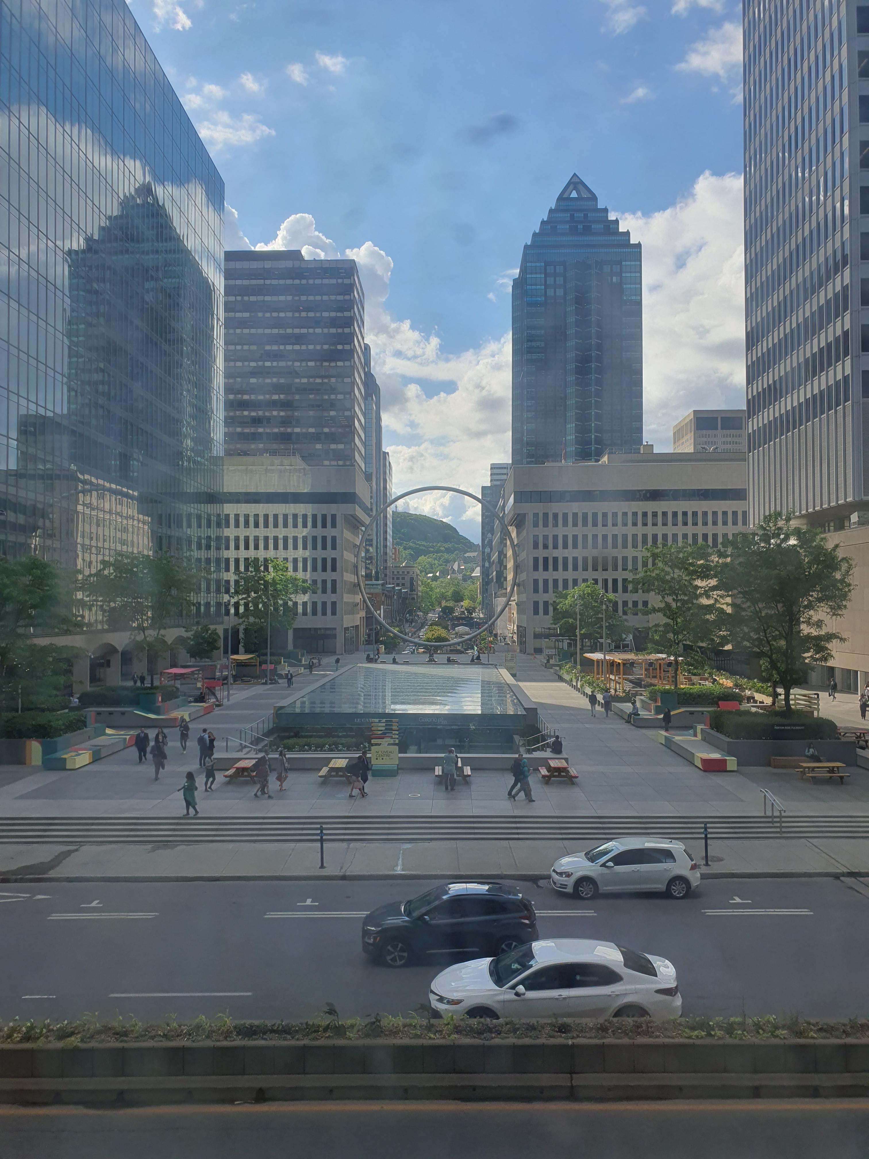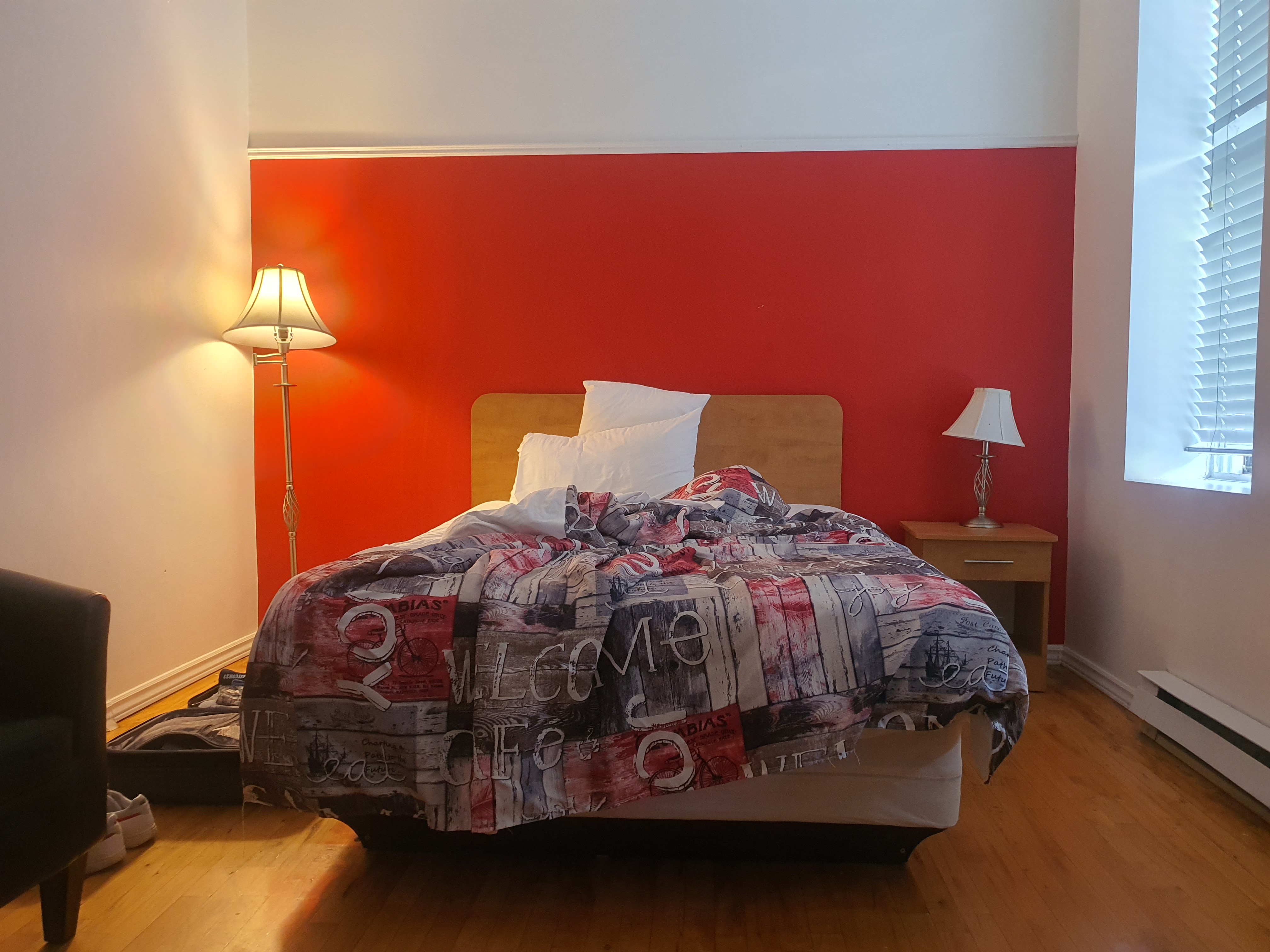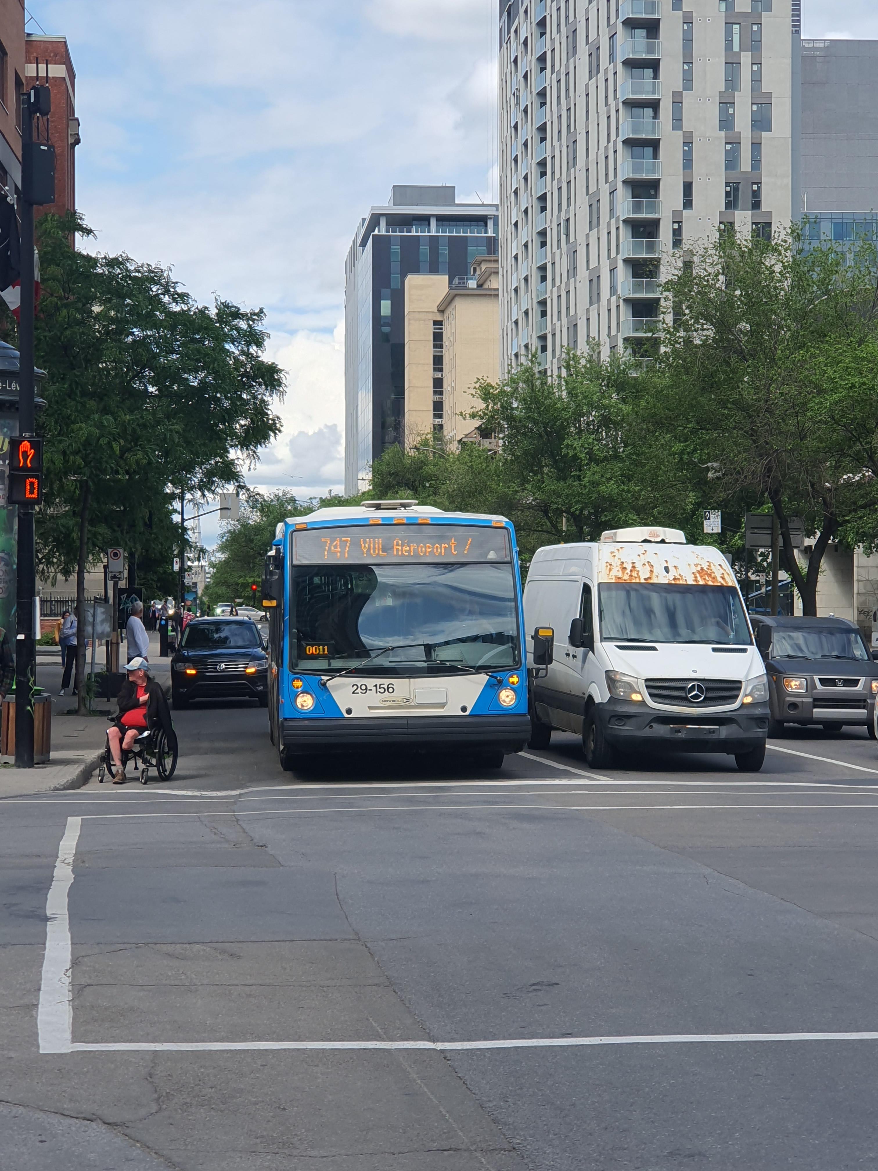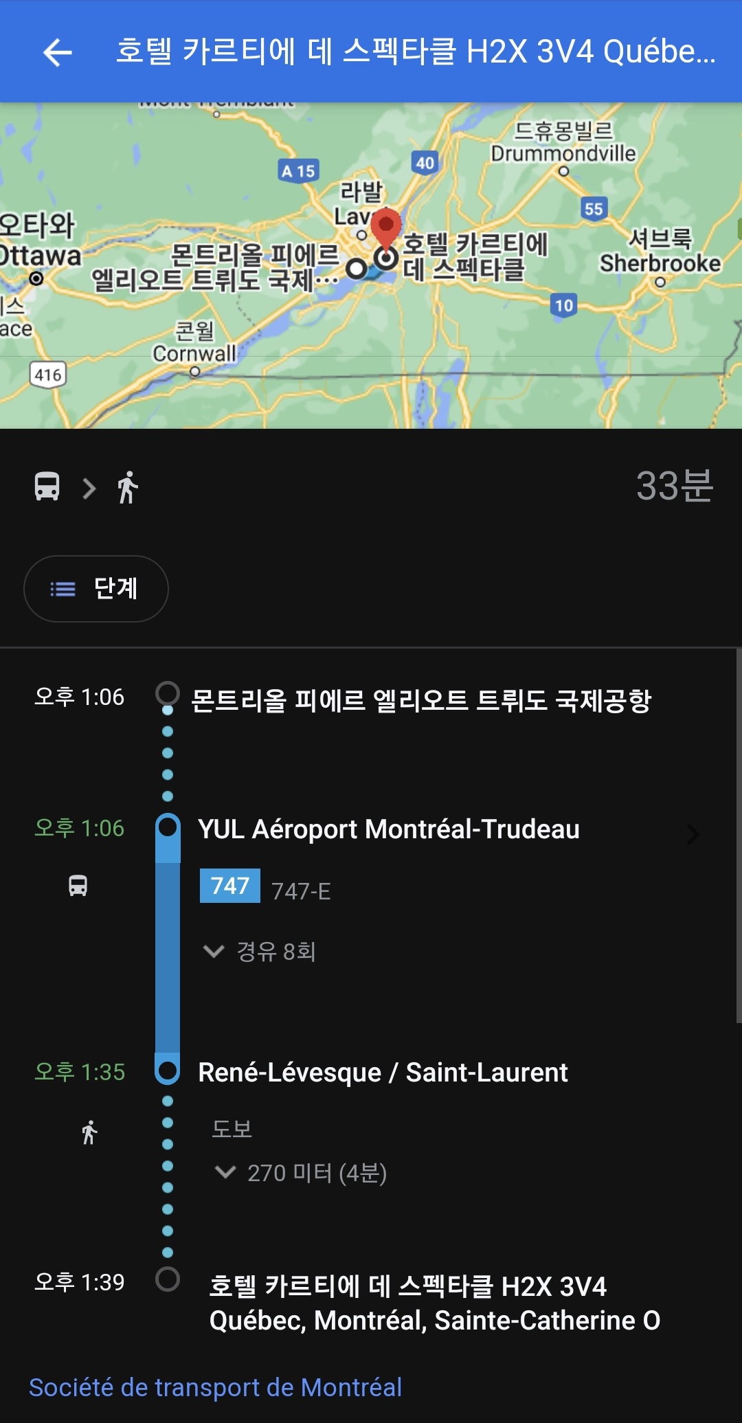 몬트리올 피에르 엘리오트 트뤼도 국제공항 (Montréal-Pierre Elliott Trudeau International Airport)에서 호텔 카르티에 더 스펙타클(Hotel Quartier des Spectacles)까지 이동하기 위해 공항버스를 이용했습니다.