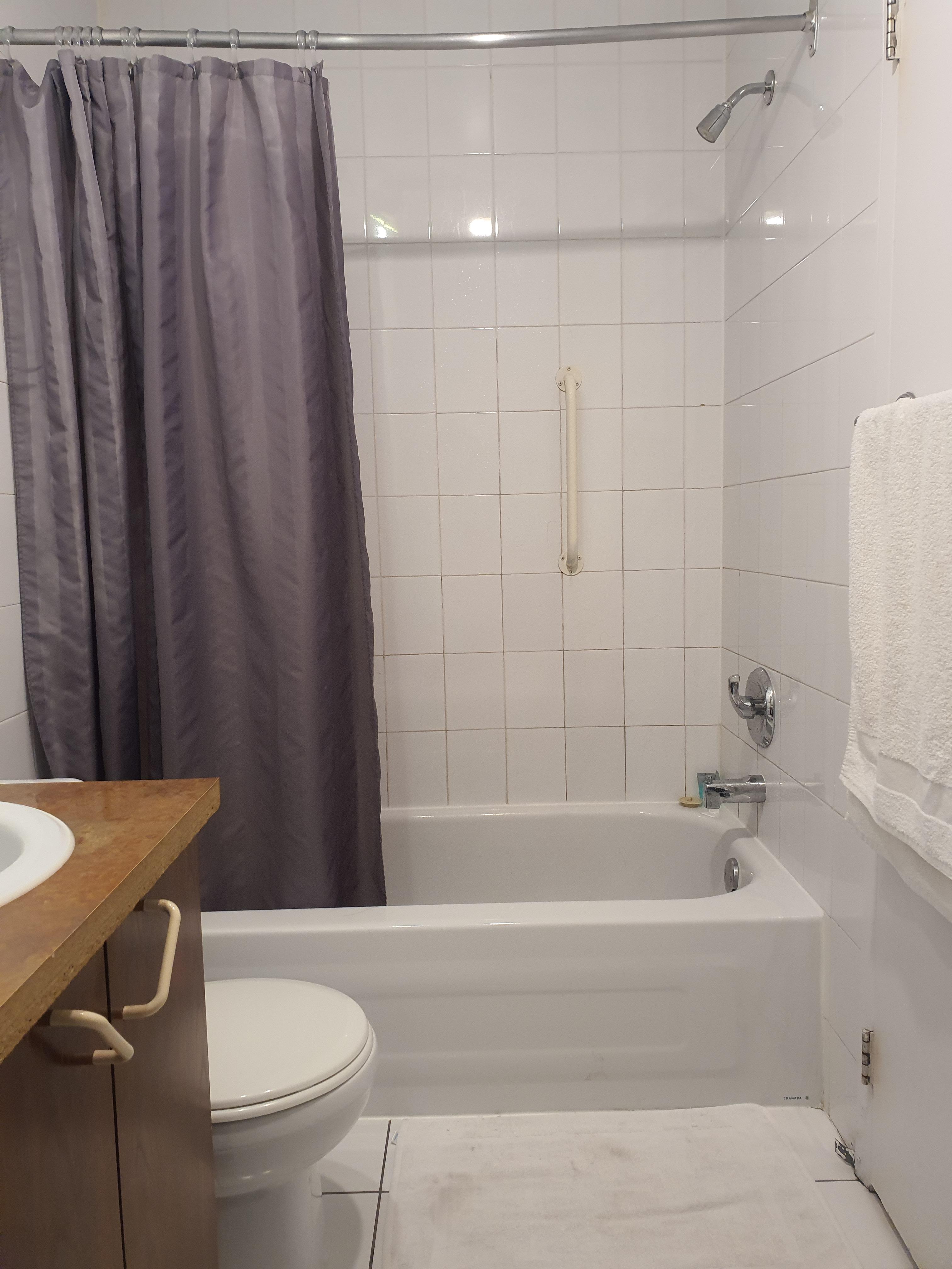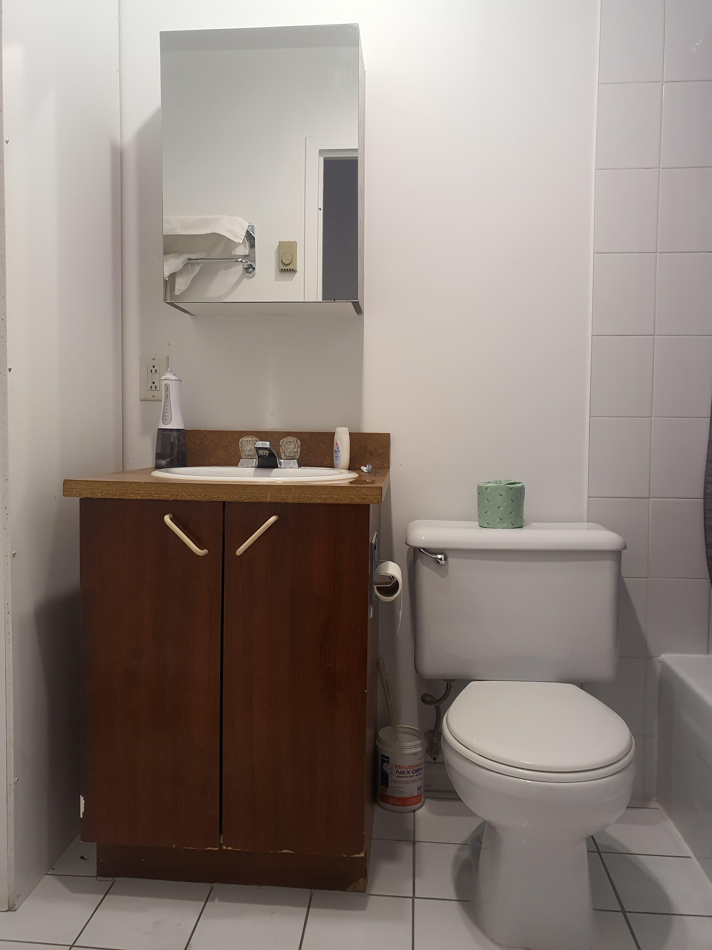 다음은 화장실입니다. 무난합니다. 역시나 미리 사용한 뒤라 제 물건들도 있고 발매트도 깔려있습니다.