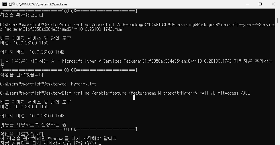 > Windows 11 Home에서 Hyper-V 비활성화