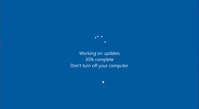- 다시 시작하면 Windows 업데이트 화면이 표시됩니다.