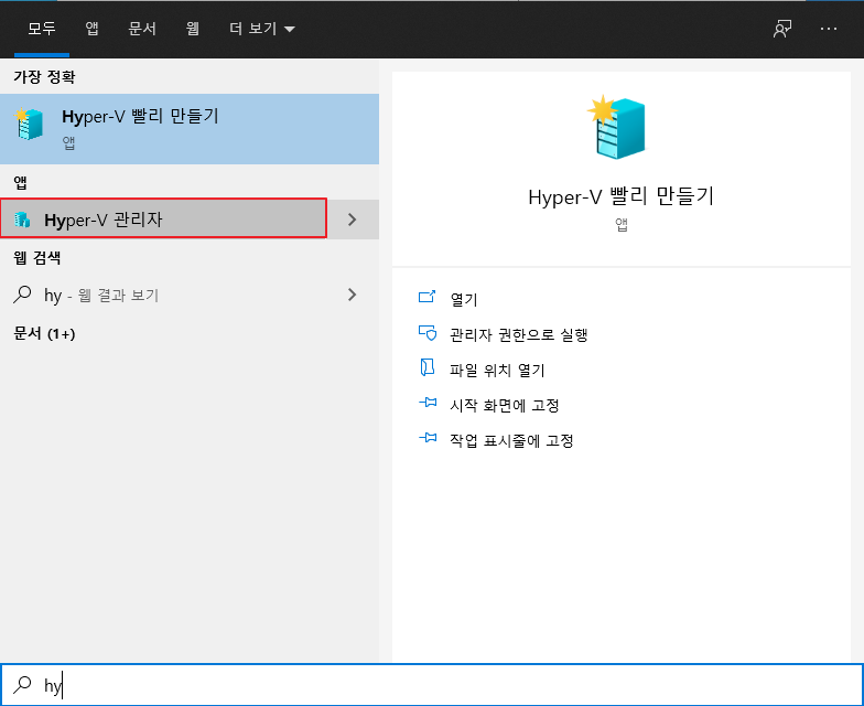> 시작 메뉴에서 hyper를 검색합니다.