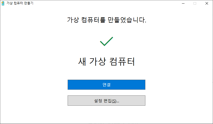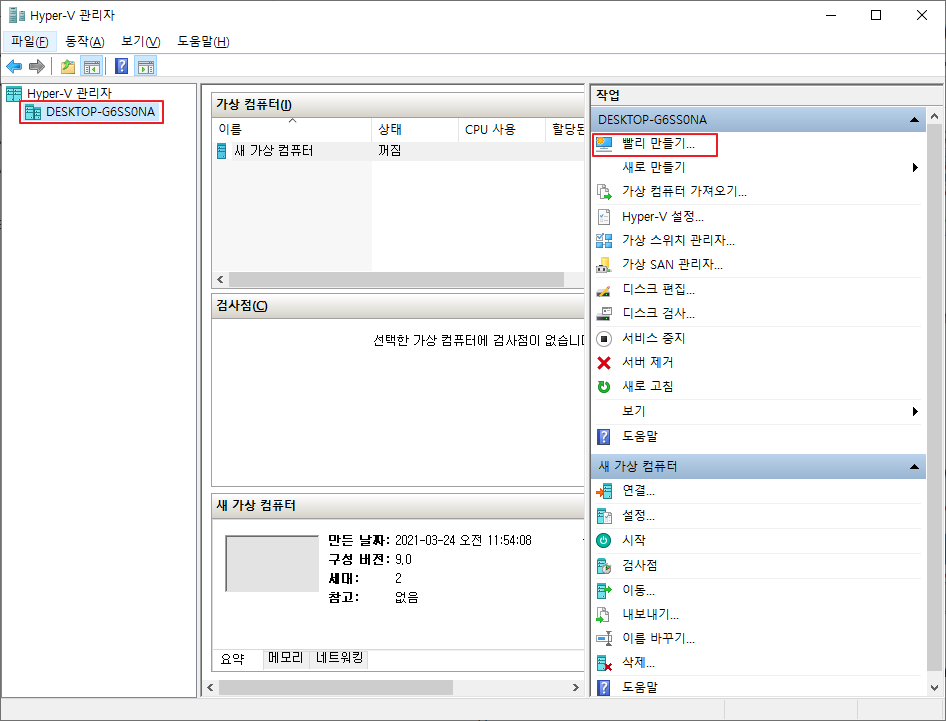 - Hyper-V가 컴퓨터 내에 설치되었으며, 이제 Hyper-V를 이용하여 가상 머신을 만들 수 있었습니다.