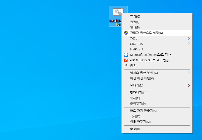 - 해당 파일을 마우스 오른쪽 버튼으로 클릭하고 관리자 권한으로 실행을 선택합니다. 그러면 설치 스크립트가 실행됩니다. 설치를 완료하는 데 다소 시간이 걸릴 수 있습니다. 완료 전에 종료하지 말고 기다려주세요.