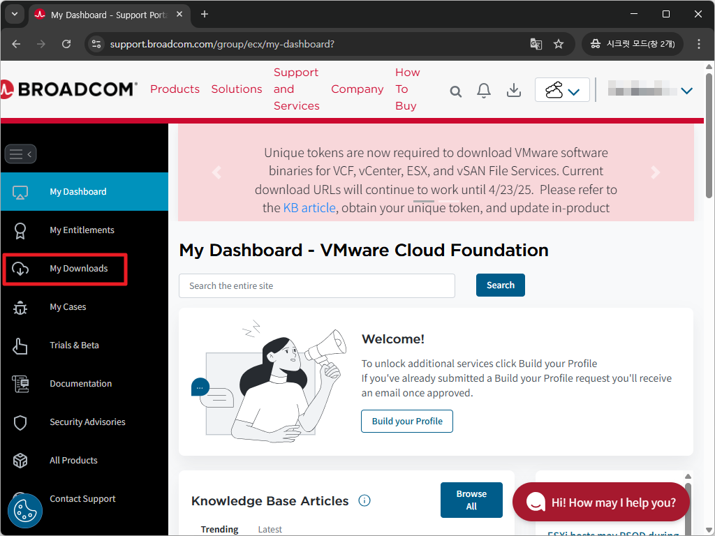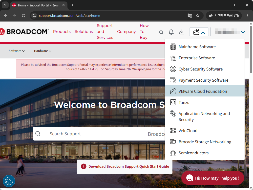 - 구름모양 소프트웨어 메뉴를 열고 VMware Cloud Foundation을 선택합니다 .