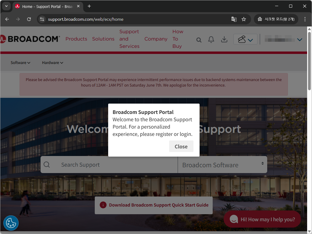 - 로그인 후 Close 버튼을 누르세요.
