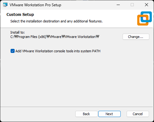 - "Add VMware Workstation console tools into system PATH" 옵션을 선택합니다.