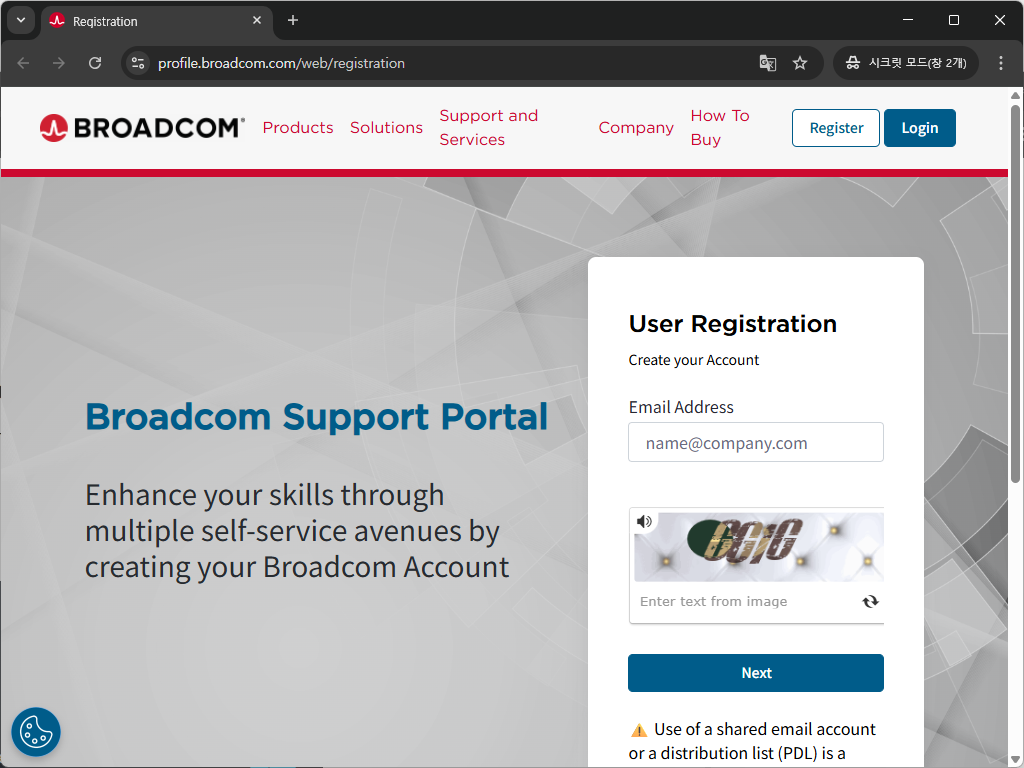 - 다음 버튼을 클릭하세요. > 인증코드를 확인하세요. > "확인 및 계속" 버튼을 클릭하세요. > 필수 정보를 입력하세요.