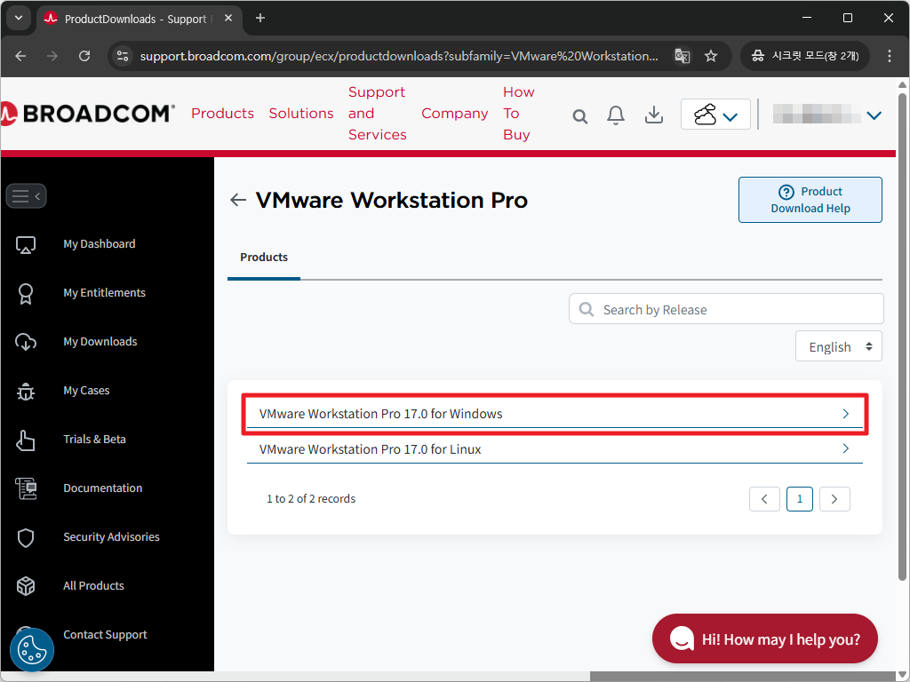 - VMware Workstation Pro 17.0 for Windows를 클립합니다.