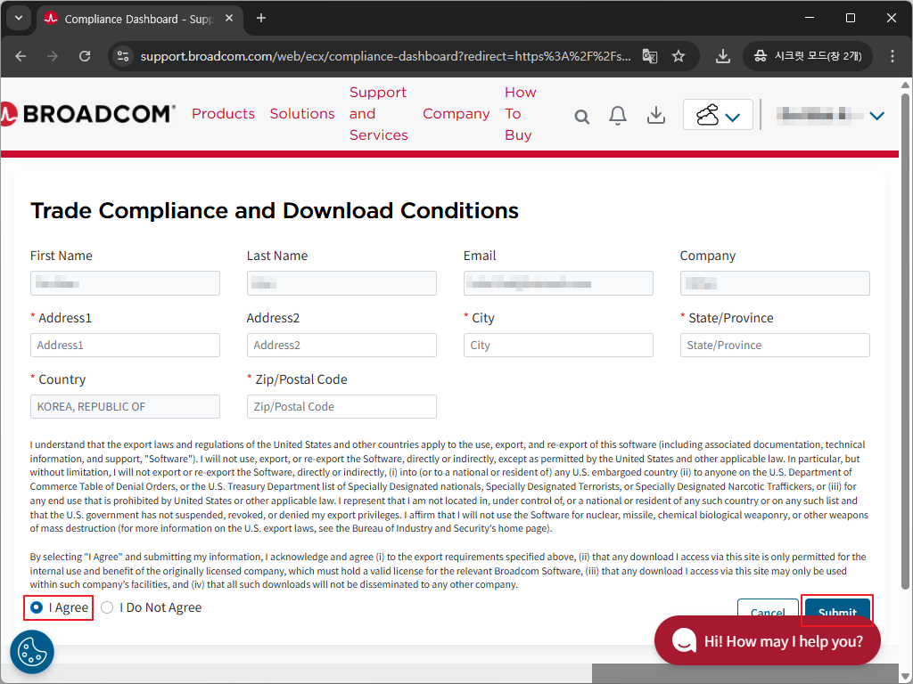 - 설치 프로그램을 다운로드하려면 Terms and Conditions를 먼저 클릭한 후 "동의함" 옵션을 선택하세요.