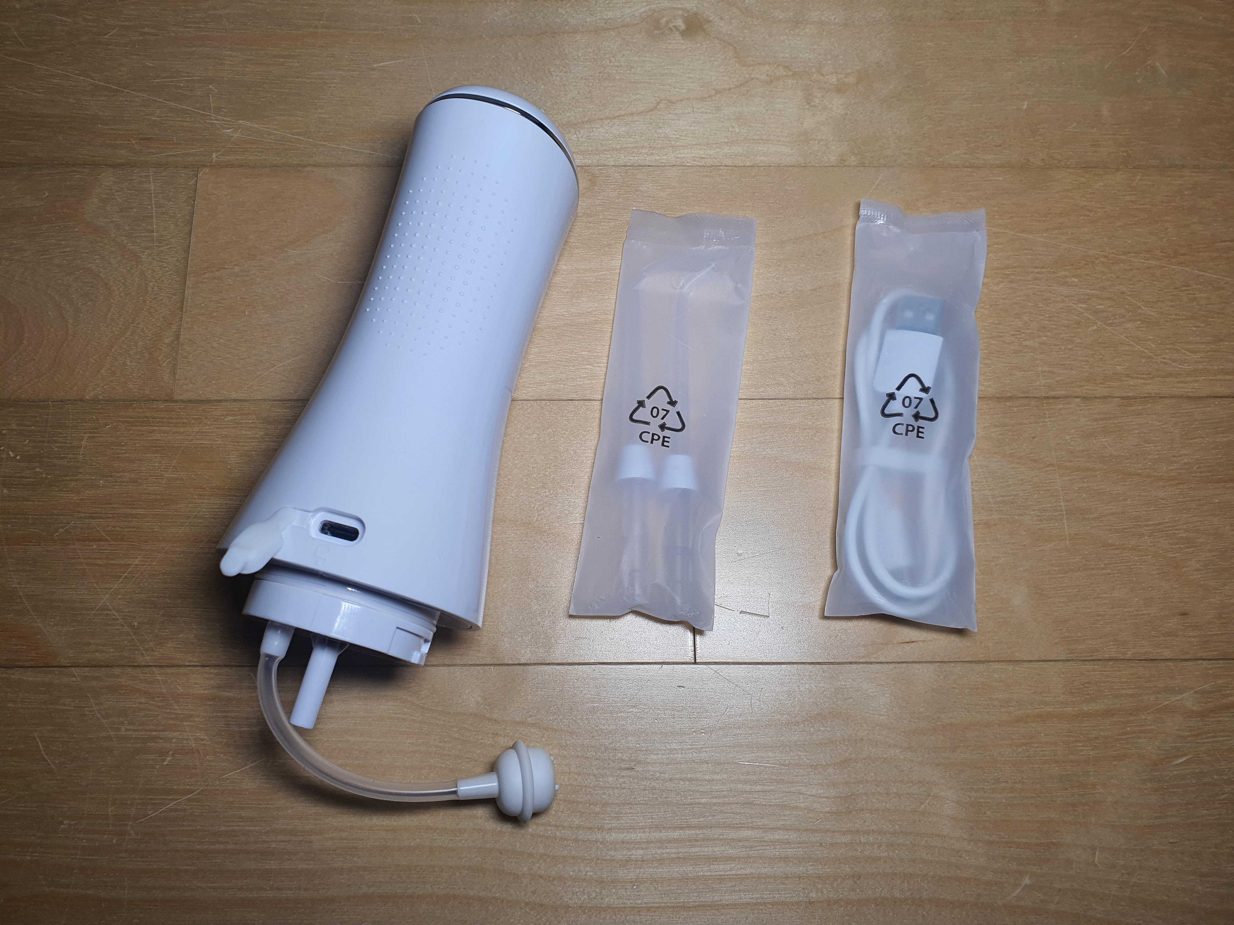 본품 비닐을 벗겨보면 물통안에 제트팁2개/USB케이블이 들어있습니다.