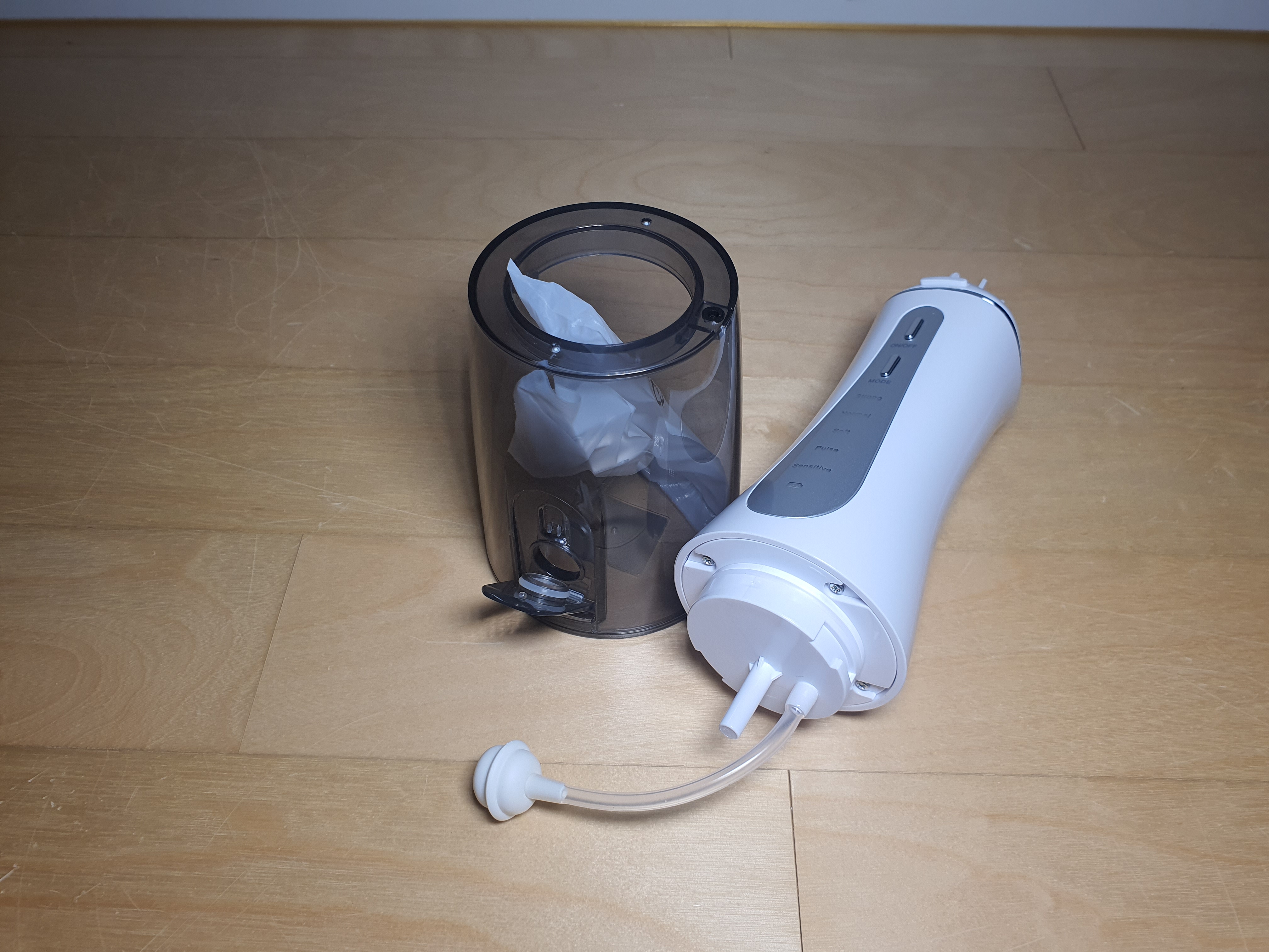 가정용 구강세정기를 사용하고 있기 때문에 수압을 비교해 볼 수 있었는데 가정용과 비교해도 부족함이 없을 정도로 수압도 만족스럽고, 수조통은 한번만 채워서 사용할 수 있을 정도로 넉넉합니다.
